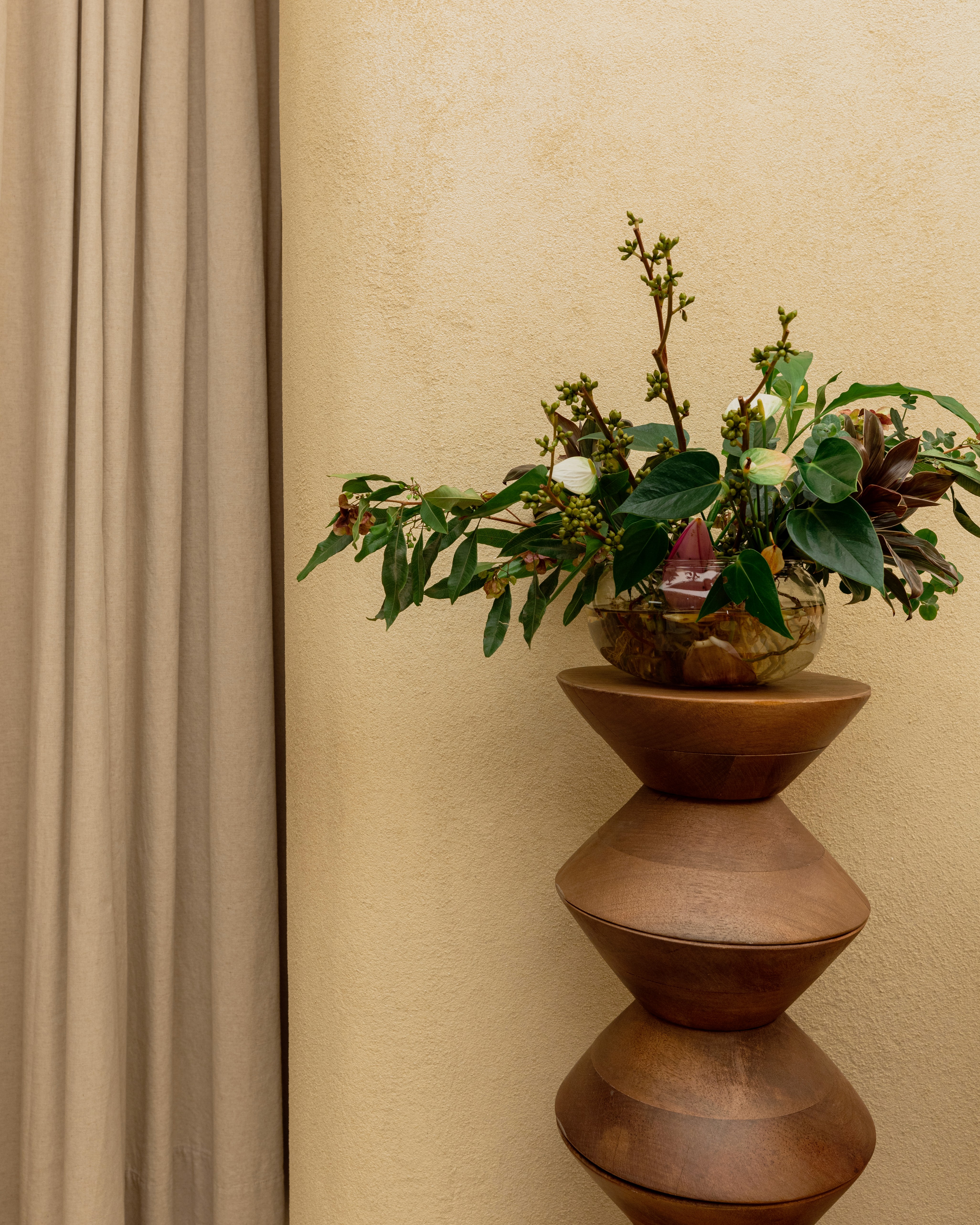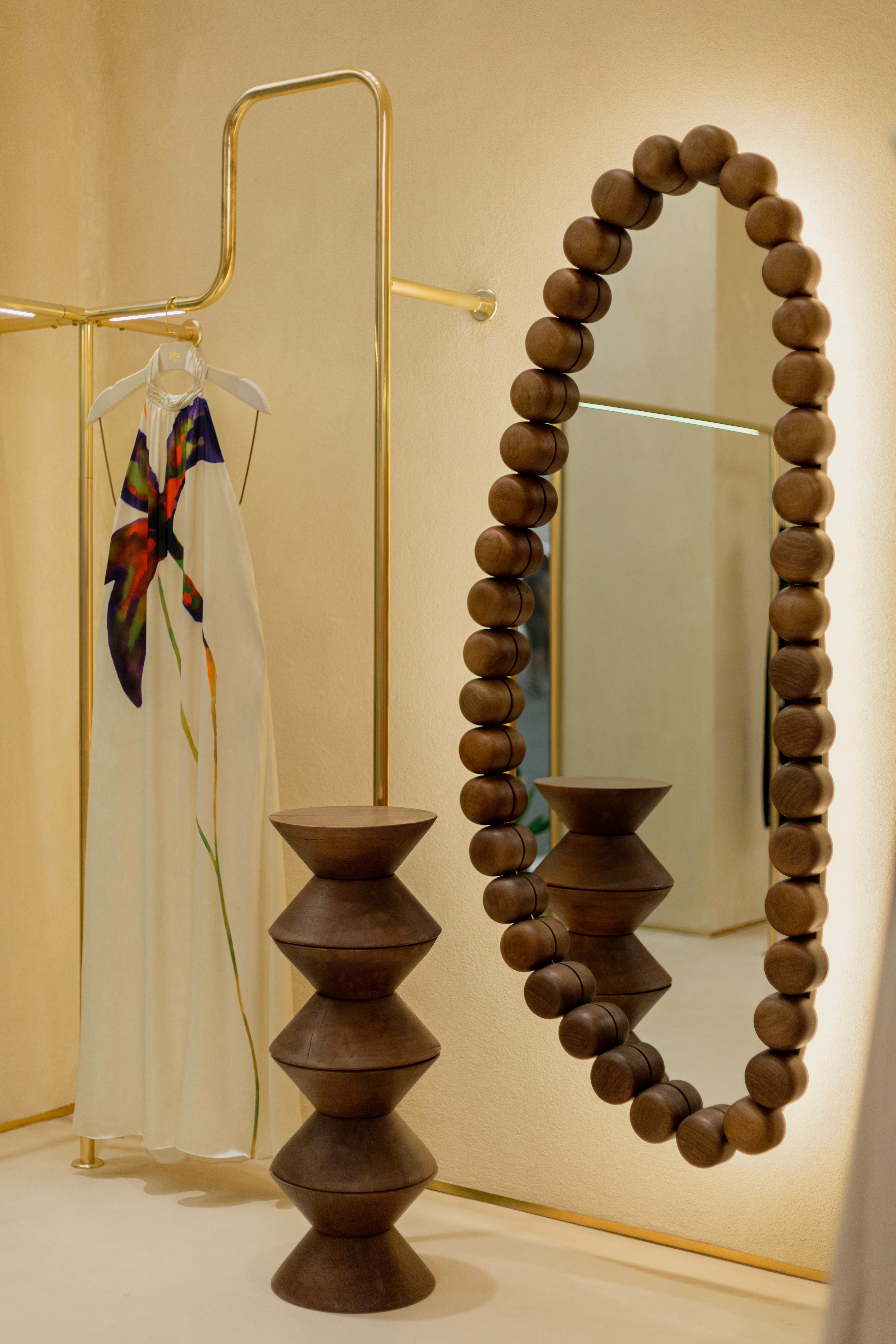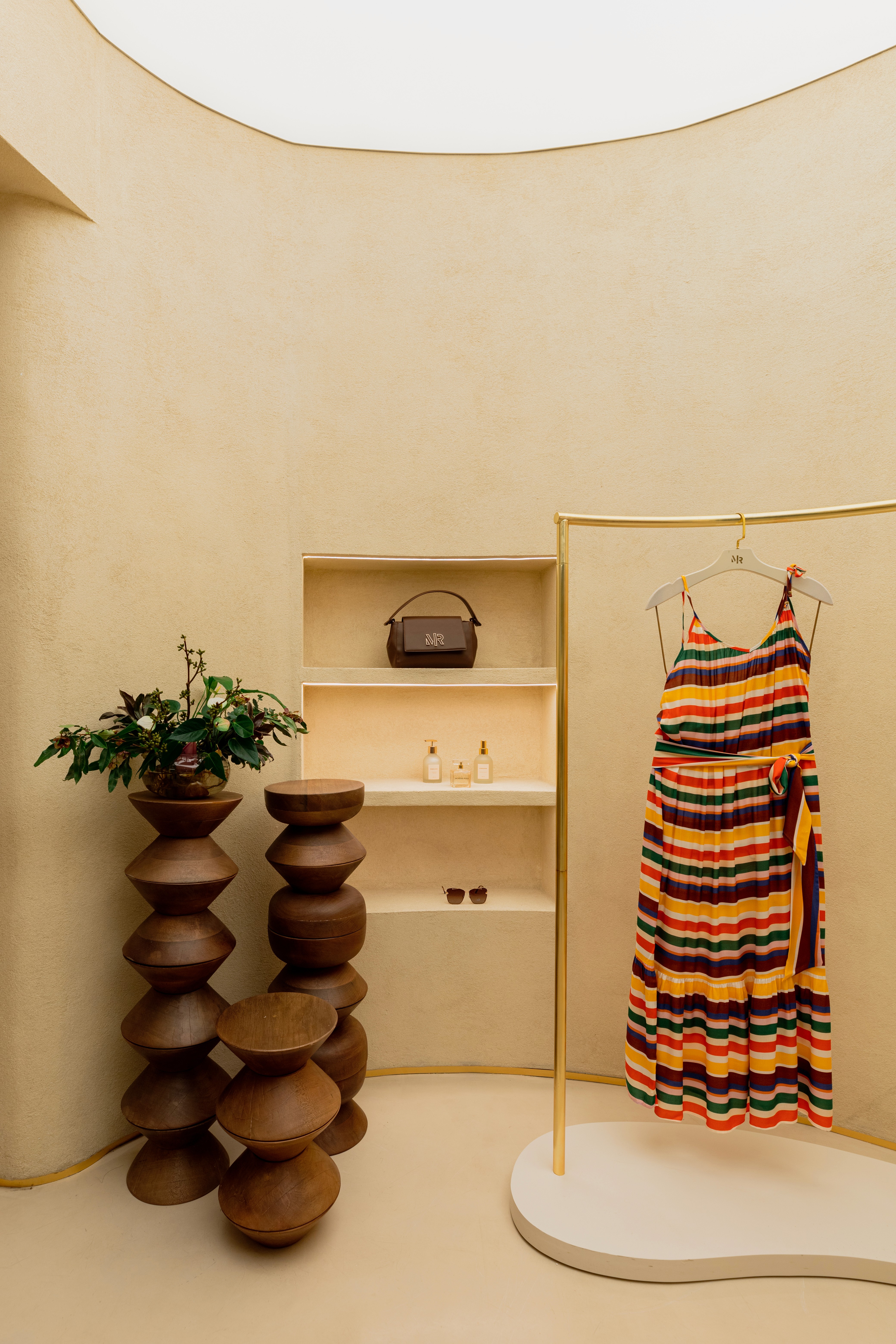 Inspirado na mulher Morena Rosa, o conceito une o orgânico e o natural ao brutalismo e à pureza dos materiais. Formas curvas e simples traduzem sensualidade e leveza, enquanto texturas minerais e detalhes exclusivos reforçam o conforto e o acolhimento. A combinação entre pedra, metal, madeira maciça e sisal expressa brasilidade e contemporaneidade, resultando em um espaço sofisticado, sensorial e feminino.